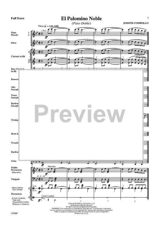 Digital Sheet Music for El Palamino Noble - Score by Joseph Compello scored for Concert Band; id:405610
