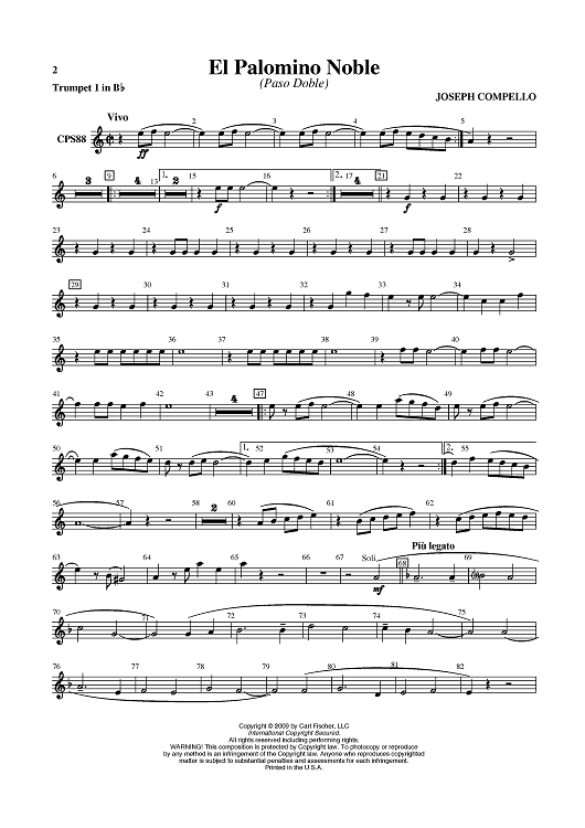Digital Sheet Music for El Palamino Noble - Trumpet 1 in B-flat by Joseph Compello scored for Concert Band; id:405632