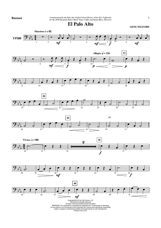 "El Palo Alto - Bassoon" Sheet Music by Gene Milford