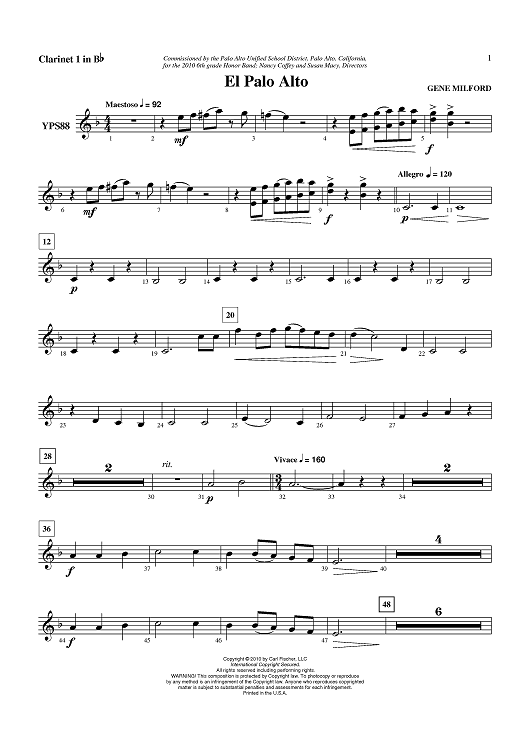 "El Palo Alto - Clarinet 1 in B-flat" Sheet Music by Gene Milford