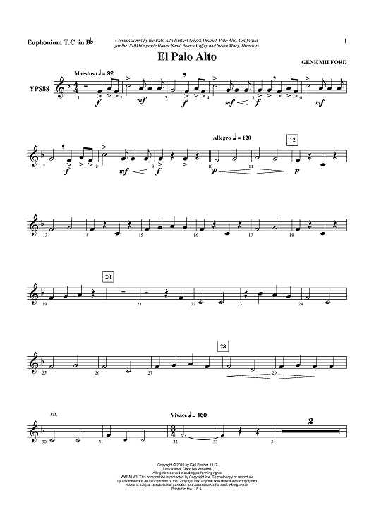 "El Palo Alto - Euphonium TC" Sheet Music by Gene Milford