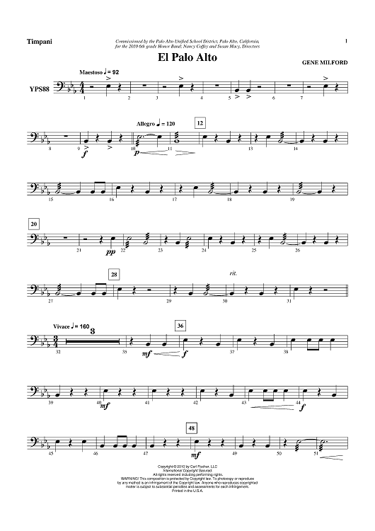 "El Palo Alto - Timpani" Sheet Music by Gene Milford