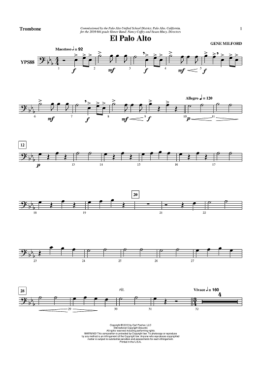 "El Palo Alto - Trombone" Sheet Music by Gene Milford