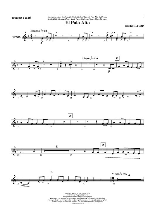 "El Palo Alto - Trumpet 1 in Bb" Sheet Music by Gene Milford