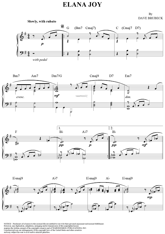 Digital Sheet Music for Elana Joy by Dave Brubeck scored for Piano Solo; id:275718