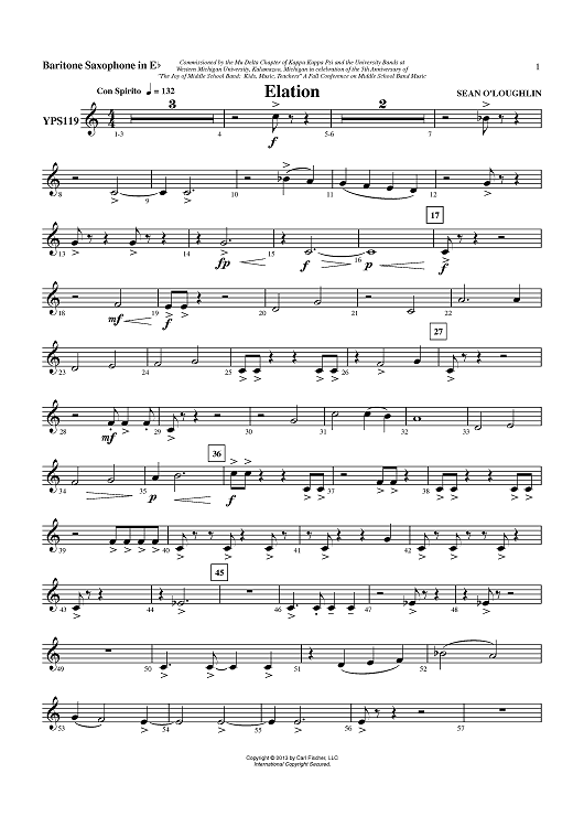 Digital Sheet Music for Elation - Baritone Sax by Sean O'Loughlin scored for Concert Band; id:436253