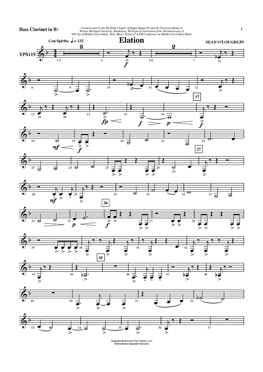 Digital Sheet Music for Elation - Bass Clarinet in Bb by Sean O'Loughlin scored for Concert Band; id:436249