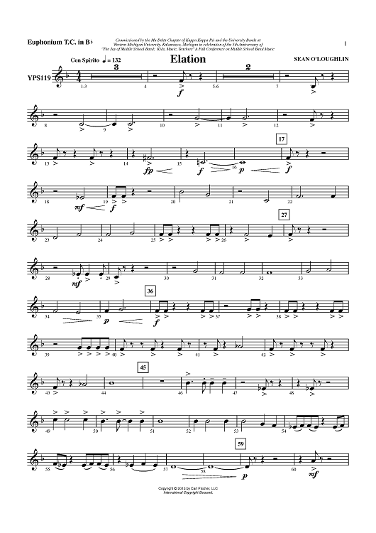 Digital Sheet Music for Elation - Euphonium TC in Bb by Sean O'Loughlin scored for Concert Band; id:436258