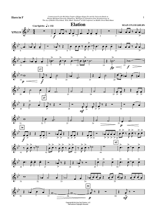 Digital Sheet Music for Elation - Horn in F by Sean O'Loughlin scored for Concert Band; id:436256