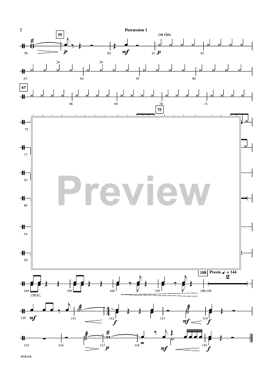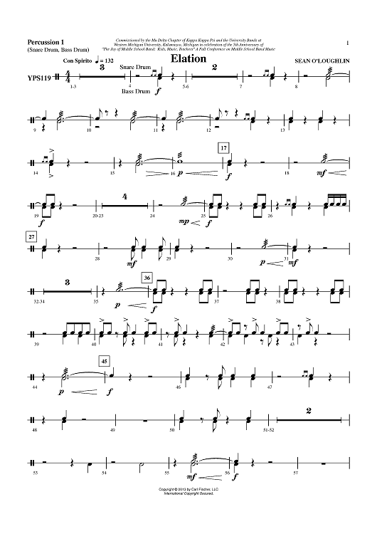 Digital Sheet Music for Elation - Percussion 1 by Sean O'Loughlin scored for Concert Band; id:436263