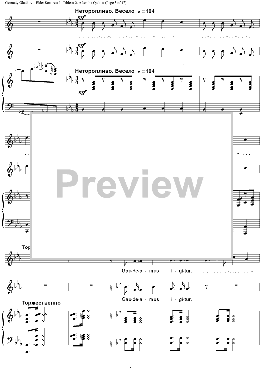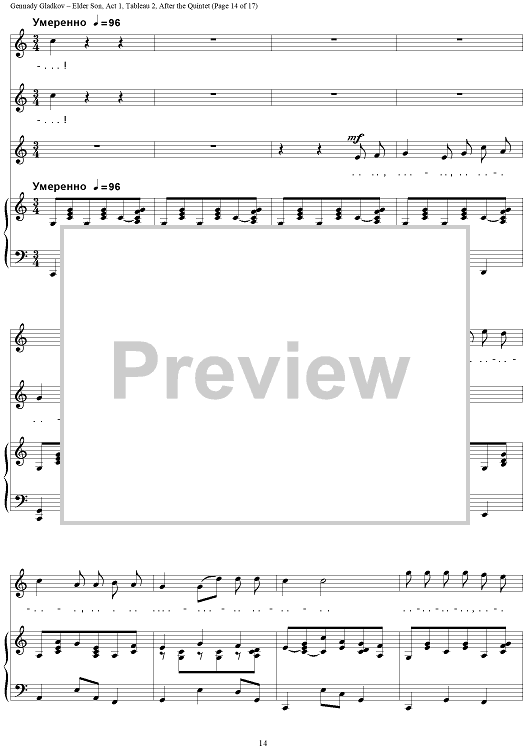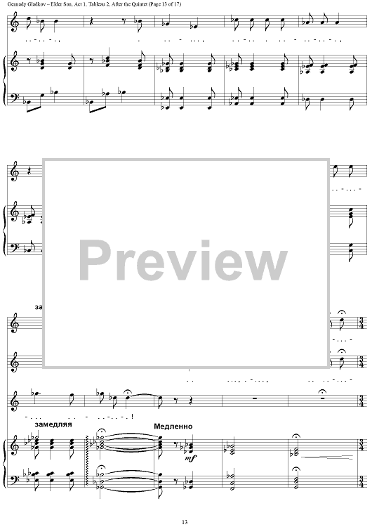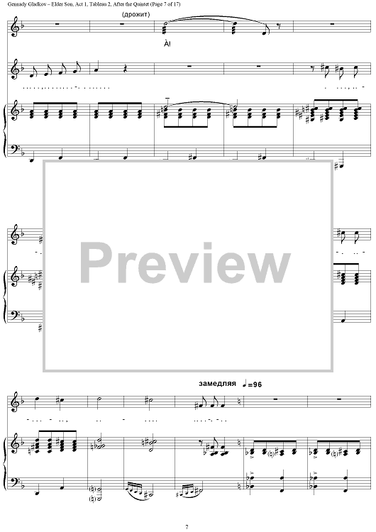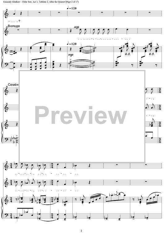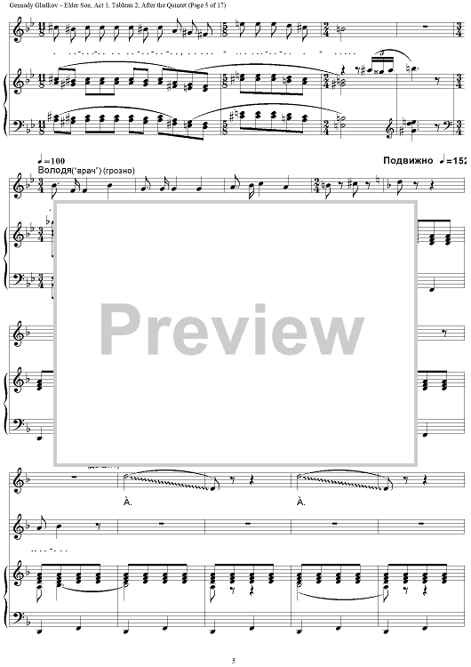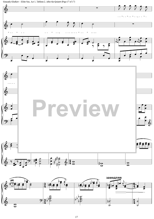 "Elder Son. Act 1. Tableau 2. After the Quintet" Sheet Music by Gennady Gladkov