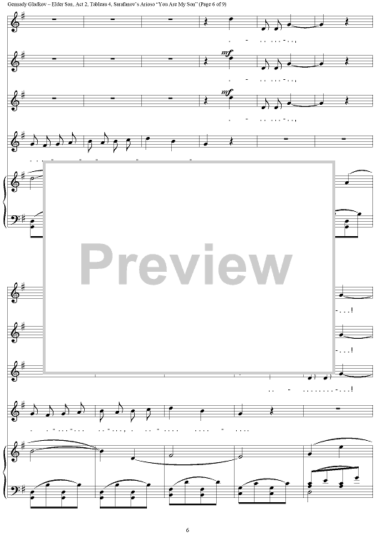 Digital Sheet Music for Elder Son. Act 2. Tableau 4. Sarafanov’s Arioso “You Are My Son” by , Gennady Gladkov, Juliy Kim scored for Vocal Score; id:367037