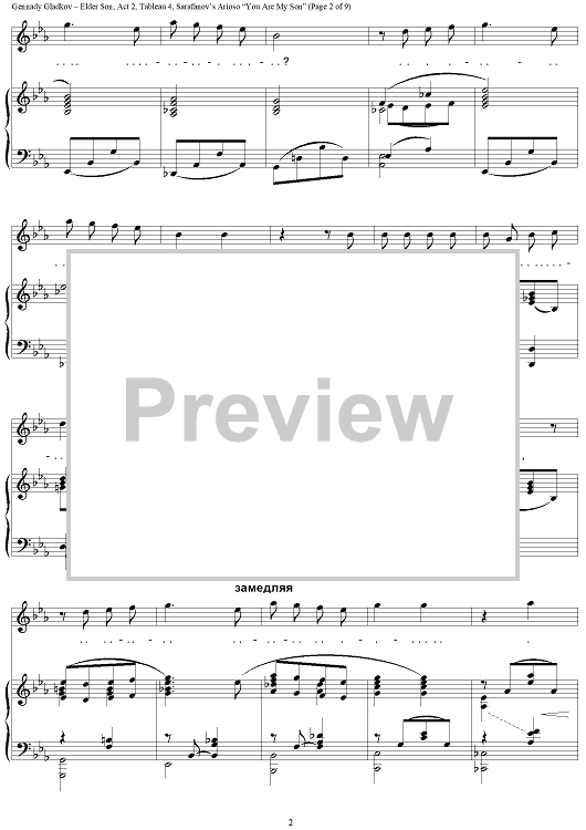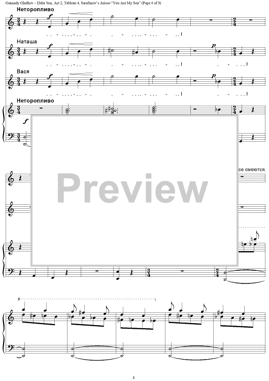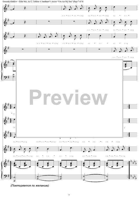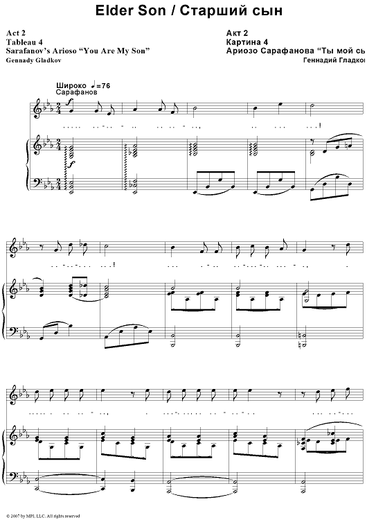 "Elder Son. Act 2. Tableau 4. Sarafanov’s Arioso “You Are My Son”" Sheet Music by Gennady Gladkov