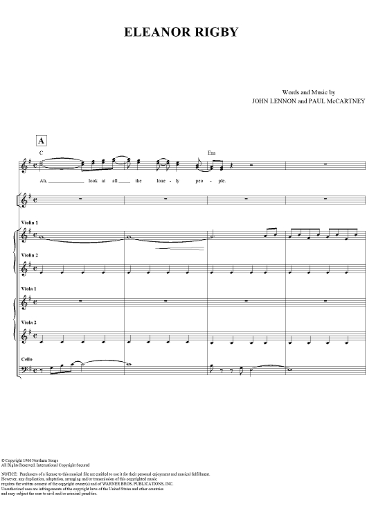 "Eleanor Rigby" Sheet Music by The Beatles