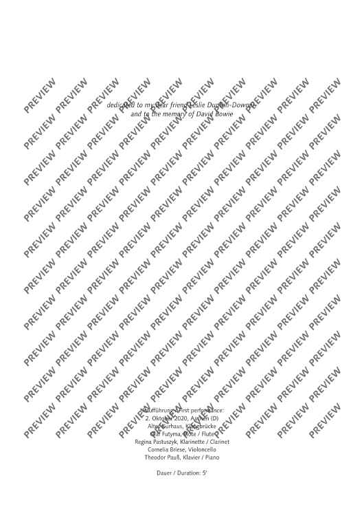 Electric Blue was created for the New Music Ensemble Aachen and was premiered at the festival „Blue(s) Planet“ there. The piece impresses with its minimalist sound structures, whose ascending and descending scales are imitated and constantly developed by the various instruments. Anno Schreier composes new and completely unique harmonic soundscapes which, detached from advanced artistic influences, offer their own answers to the questions of new music.
