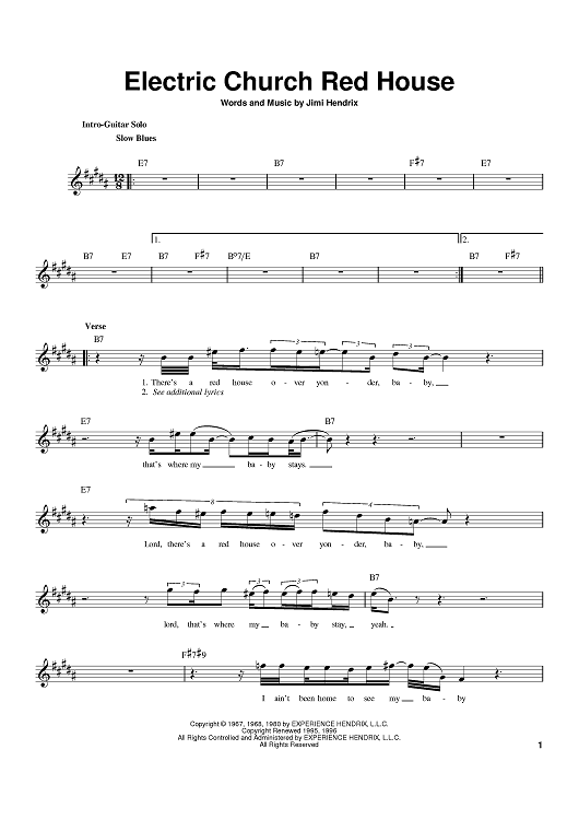"Electric Church Red House" Sheet Music by Jimi Hendrix