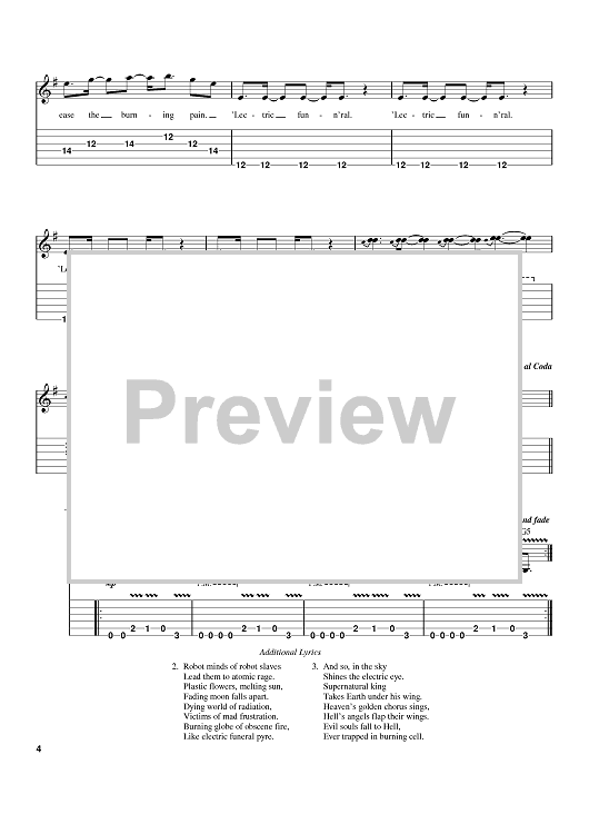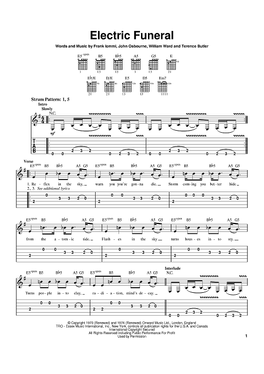 Digital Sheet Music for Electric Funeral by Bill Ward, Pantera, Black Sabbath, Tony Iommi, Ozzy Osbourne scored for Easy Guitar Tab; id:373183