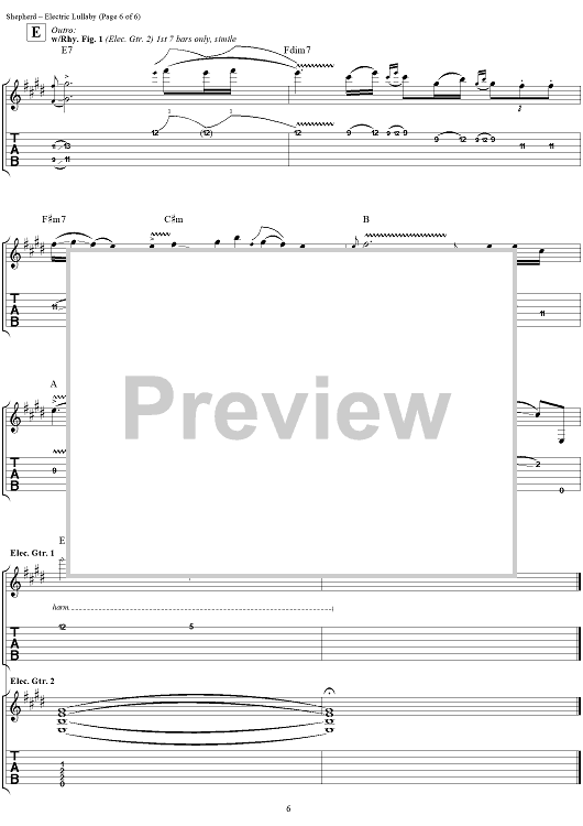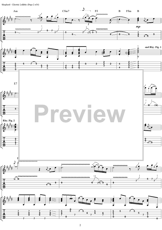 Digital Sheet Music for Electric Lullaby by Kenny Wayne Shepherd scored for Guitar Tab; id:204476