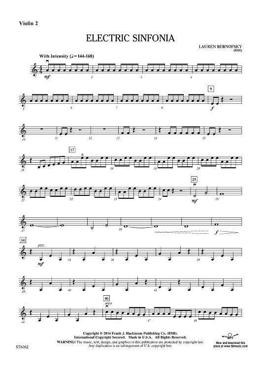 Digital Sheet Music for Electric Sinfonia - Violin 2 by Lauren Bernofsky scored for Orchestra; id:448326