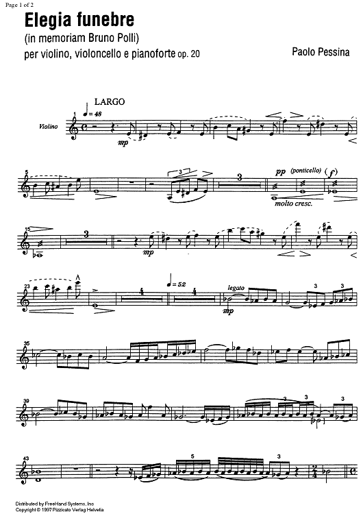 "Elegia funebre Op.20 - Violin" Sheet Music by Paolo Pessina