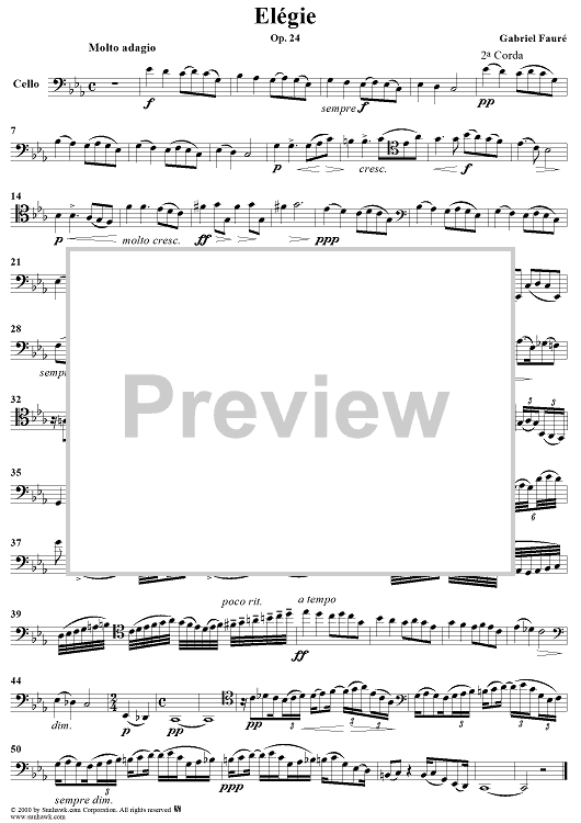 Digital Sheet Music for Elégie - Cello by Gabriel Fauré scored for Cello/Piano; id:240976