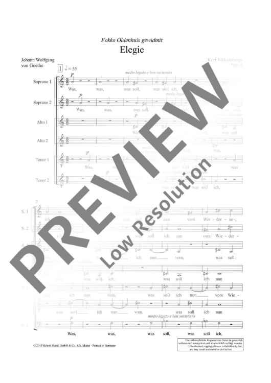 "Elegie - Choral Score" Sheet Music by Kurt Bikkembergs