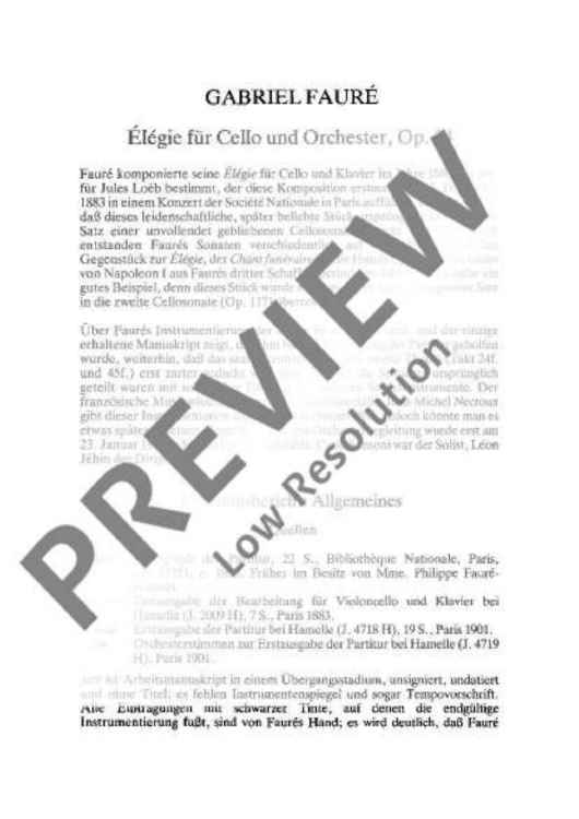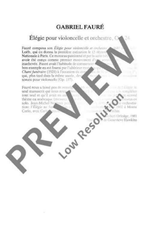 "Elegie - Full Score" Sheet Music by Gabriel Fauré