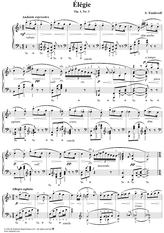 Digital Sheet Music for Elegie by S. Youferoff scored for Piano Solo; id:267437
