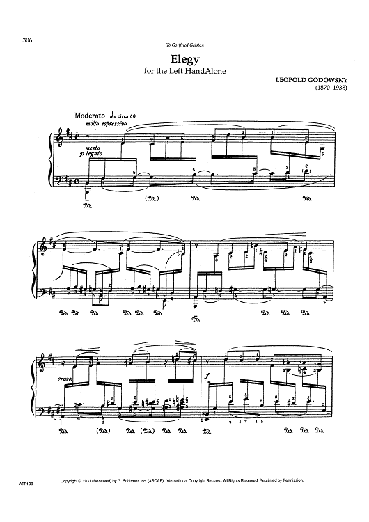 "Elegy for the Left Hand Alone" Sheet Music by Leopold Godowsky