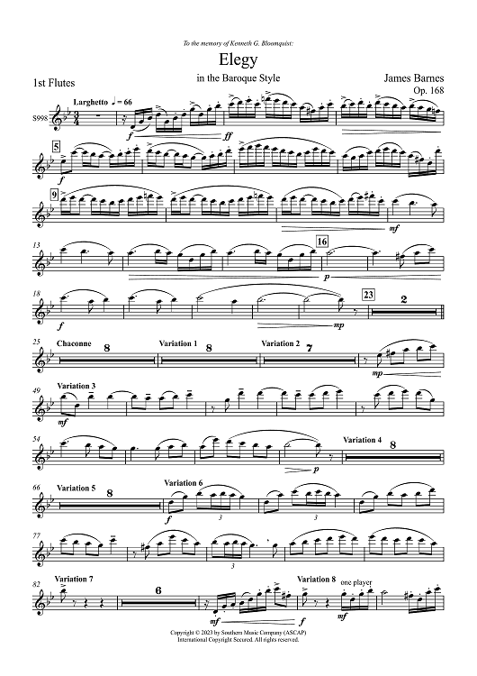 "Elegy in the Baroque Style - 1st Flutes" Sheet Music by James Barnes