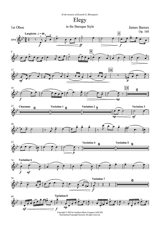 Digital Sheet Music for Elegy in the Baroque Style - 1st Oboe by James Barnes scored for Symhponic Wind Band; id:508745