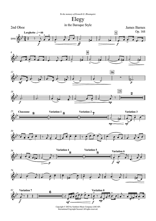 Digital Sheet Music for Elegy in the Baroque Style - 2nd Oboe by James Barnes scored for Symhponic Wind Band; id:508746