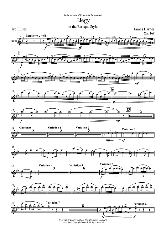 Digital Sheet Music for Elegy in the Baroque Style - 3rd Flutes by James Barnes scored for Symhponic Wind Band; id:508744