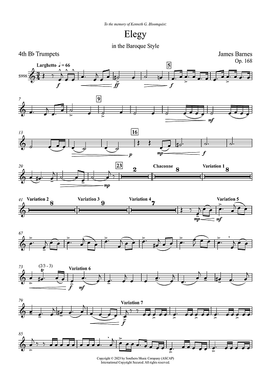 "Elegy in the Baroque Style - 4th Bb Trumpets" Sheet Music by James Barnes