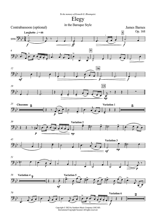 "Elegy in the Baroque Style - Contrabassoon" Sheet Music by James Barnes