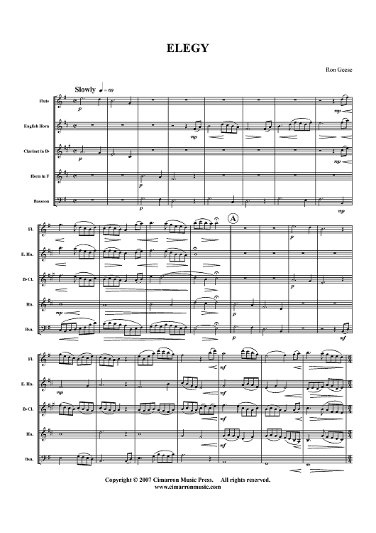 Digital Sheet Music for Elegy - Score by , Ron Geese scored for Woodwind Quintet; id:365814