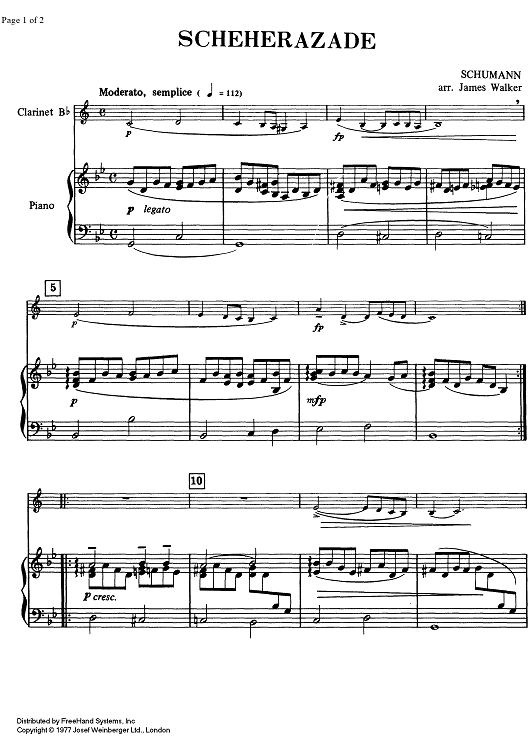 Digital Sheet Music for Elementary 1/5 - Scheherazade - Score by Robert Schumann, James Walker scored for Clarinet/Piano; id:332622