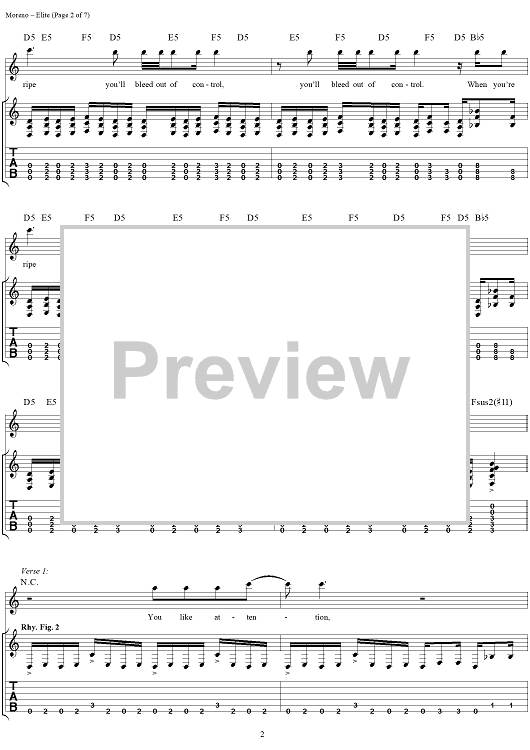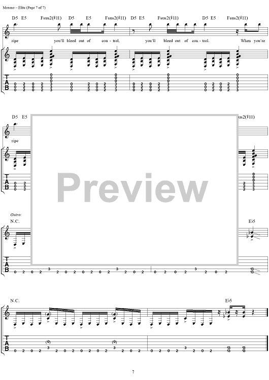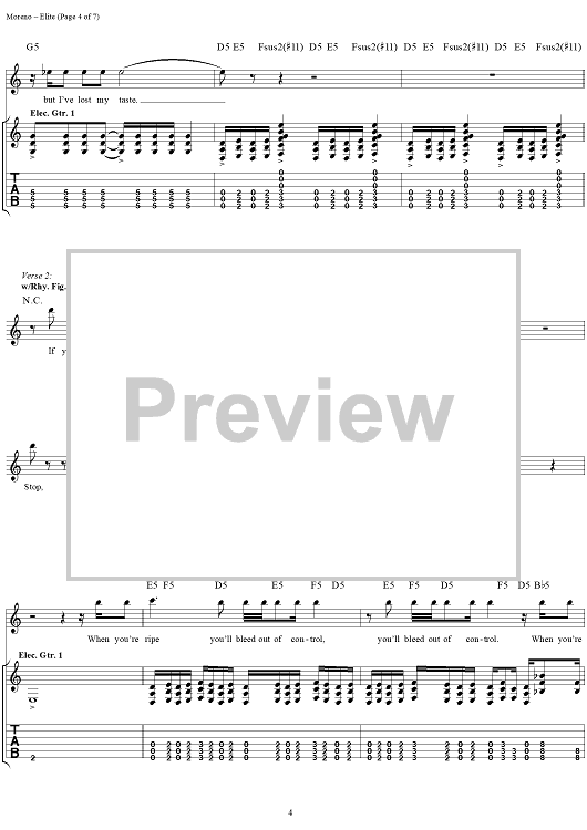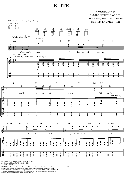 Digital Sheet Music for Elite by Deftones, Chino Moreno, Chi Cheng, Abe Cunningham scored for Guitar Tab/Vocal; id:286530