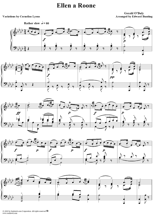 Digital Sheet Music for Ellen a Roone by , Edward Bunting, Cornelius Lyons, Gerald O'Daly scored for Piano Solo; id:240305