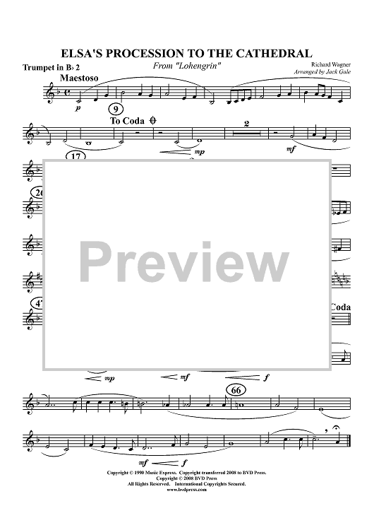 Digital Sheet Music for Elsa's Procession to the Cathedral - Trumpet 2 by Richard Wagner, Jack Gale scored for Brass Quintet; id:405052