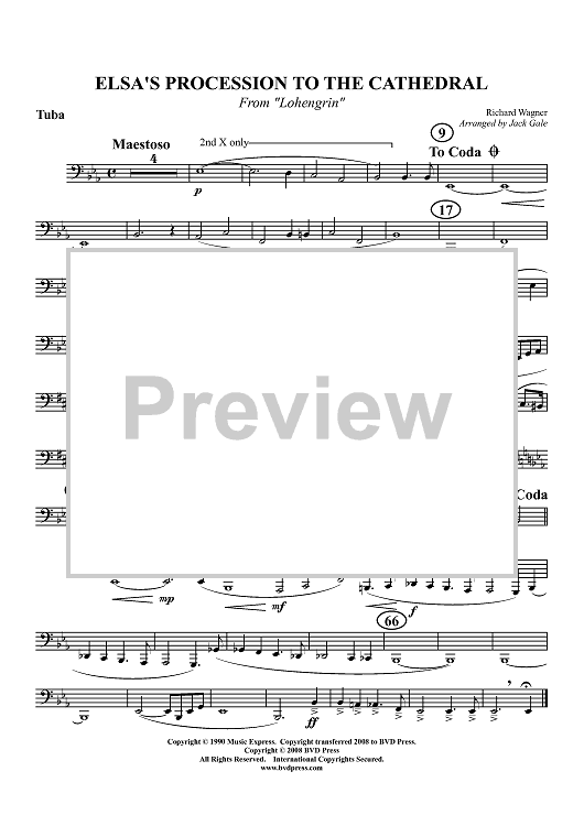 "Elsa's Procession to the Cathedral - Tuba" Sheet Music by Richard Wagner