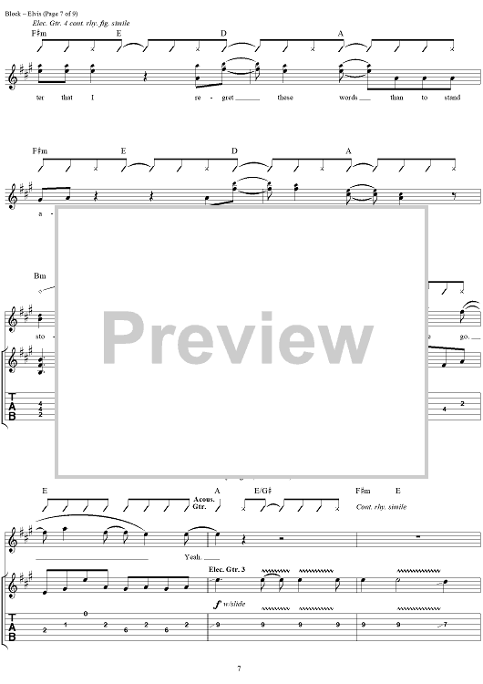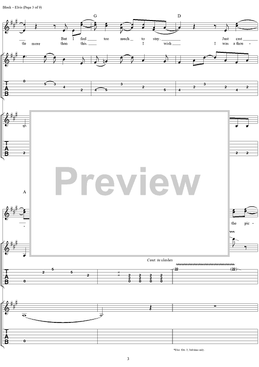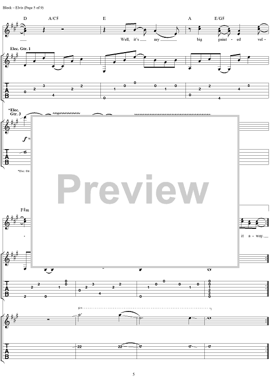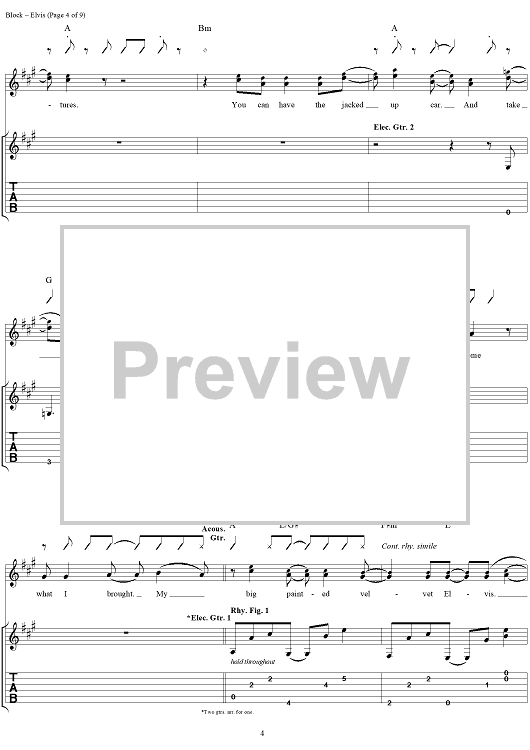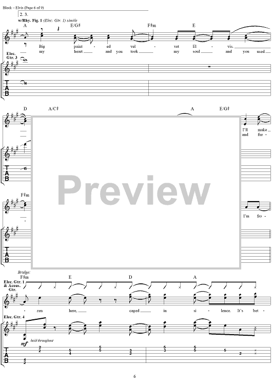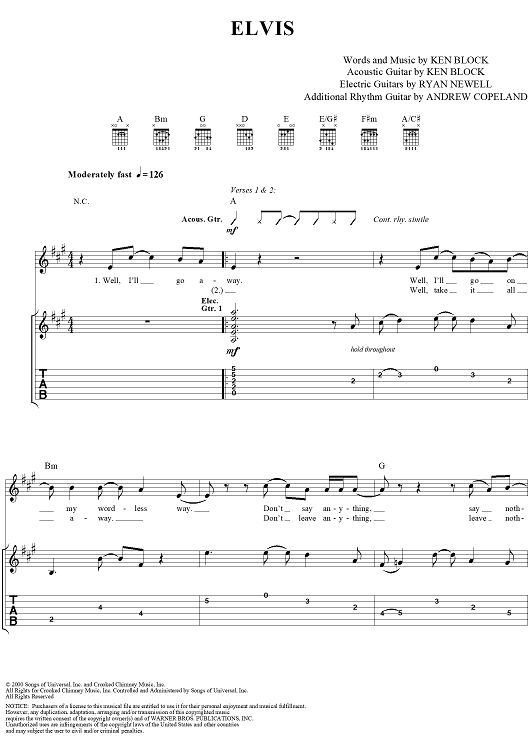 Digital Sheet Music for Elvis by Sister Hazel, Ken Block, Andrew Copeland, Ryan Newell scored for Guitar Tab/Vocal; id:285464