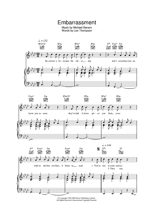 Digital Sheet Music for Embarrassment by Mike Barson, Madness, Lee Thompson scored for Piano/Vocal/Chords; id:398153