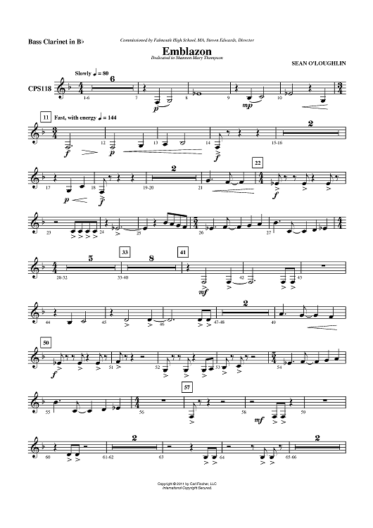 Digital Sheet Music for Emblazon - Bass Clarinet in Bb by Sean O'Loughlin scored for Concert Band; id:420247
