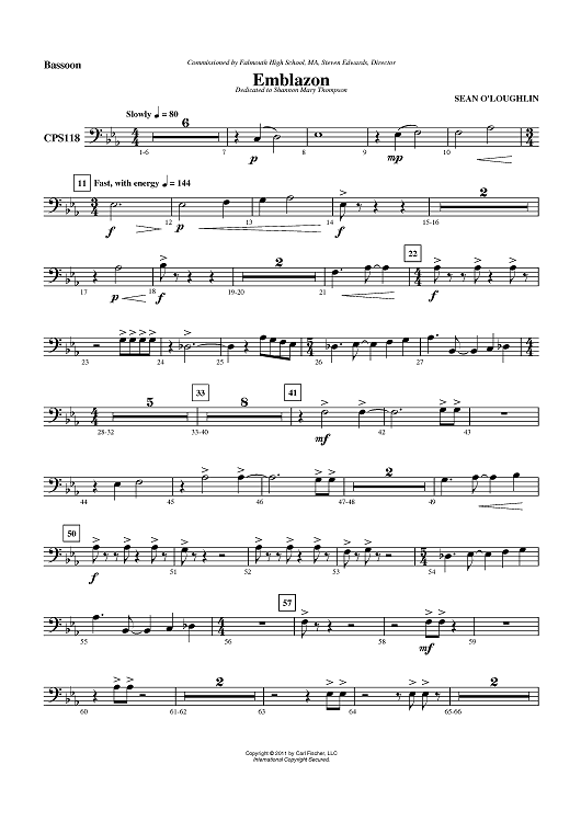 Digital Sheet Music for Emblazon - Bassoon by Sean O'Loughlin scored for Concert Band; id:420248