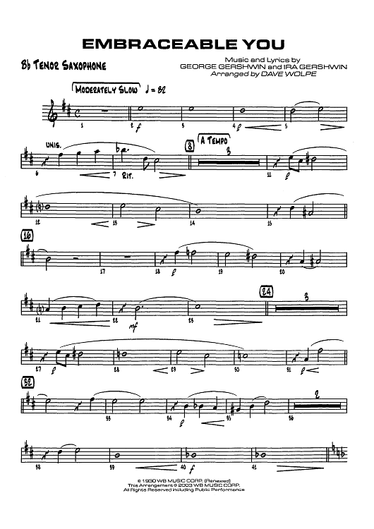 Digital Sheet Music for Embraceable You - Bb Tenor Sax by , George Gershwin, Ira Gershwin, Dave Wolpe scored for Jazz Ensemble; id:437502