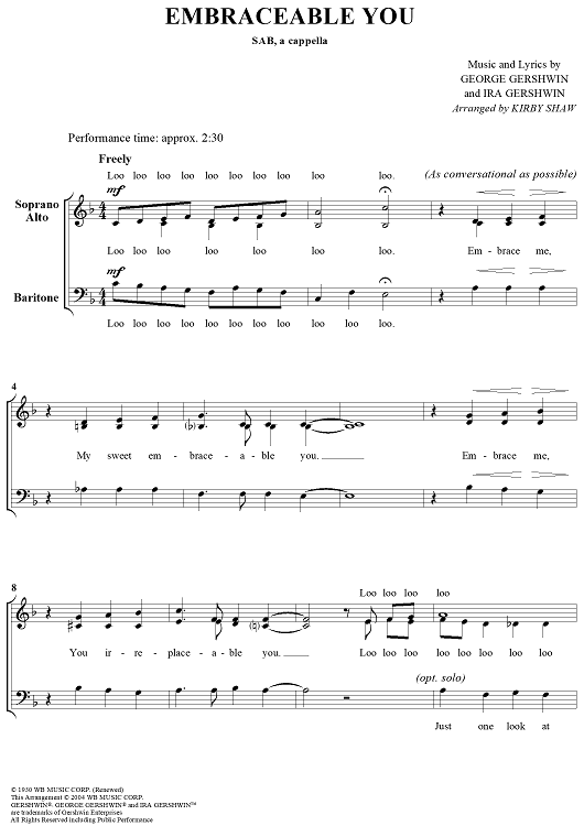 Digital Sheet Music for Embraceable You by George Gershwin, Ira Gershwin, Kirby Shaw scored for SAB, a cappella; id:318351