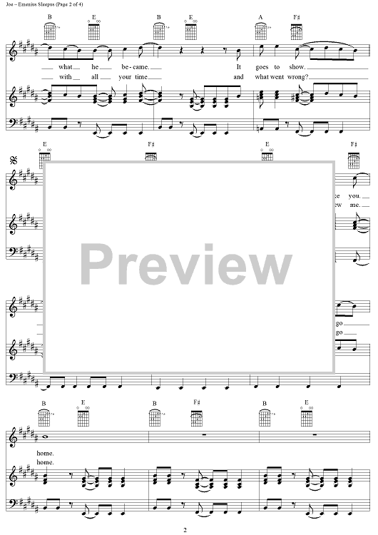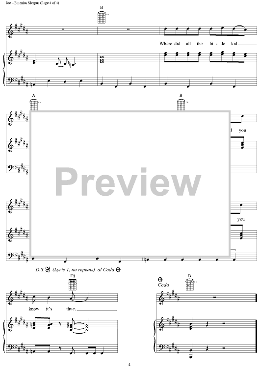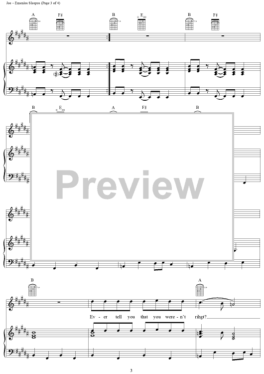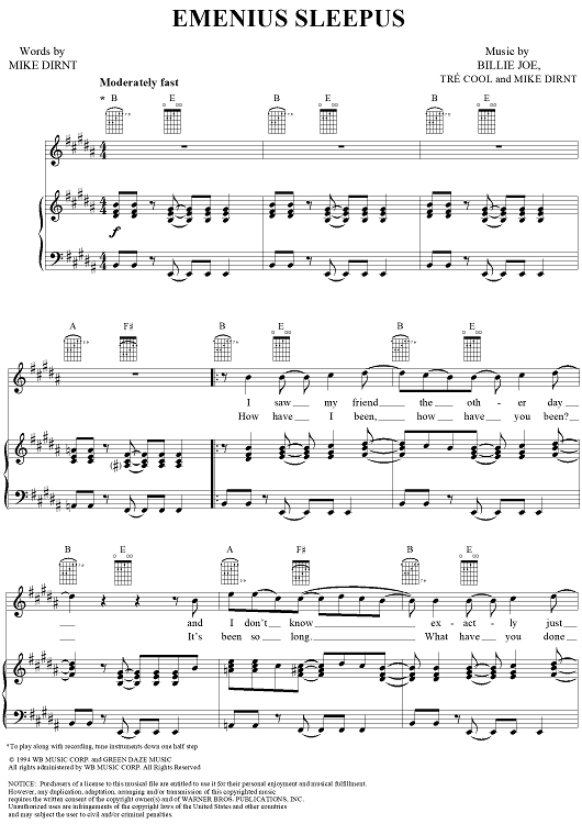 Digital Sheet Music for Emenuis Sleepus by Tré Cool, Mike Dirnt, Green Day, Billie Joe scored for Piano/Vocal/Chords; id:268608