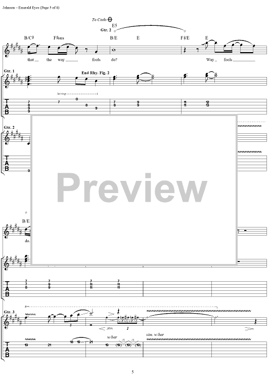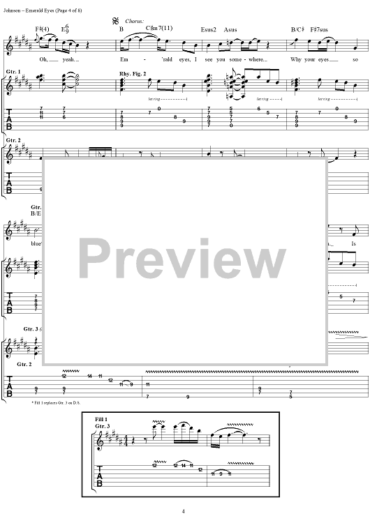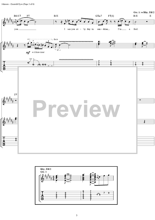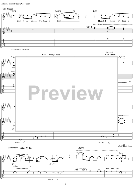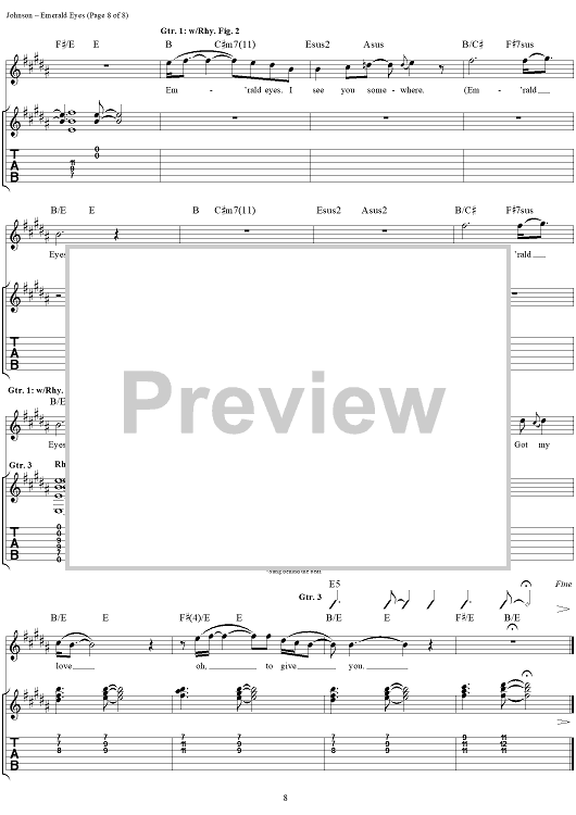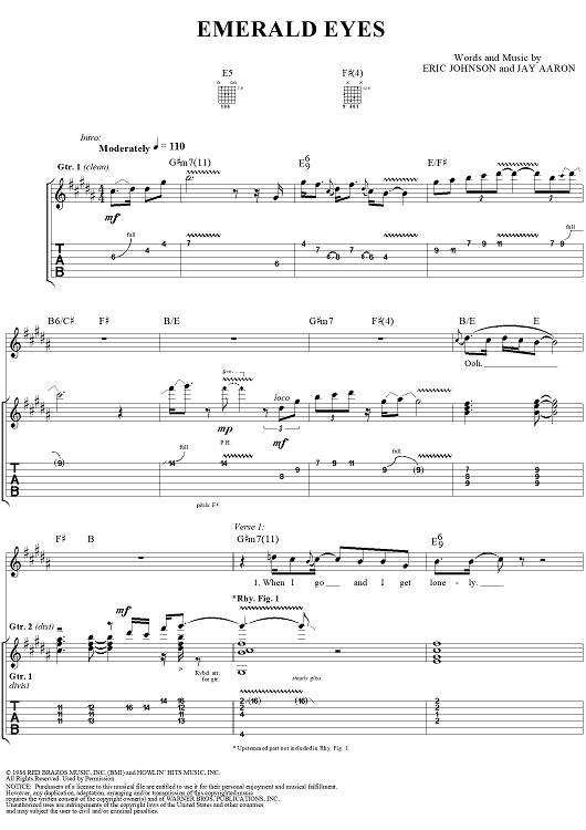 Digital Sheet Music for Emerald Eyes by Eric Johnson, Jay Aaron scored for Guitar Tab/Vocal; id:120742