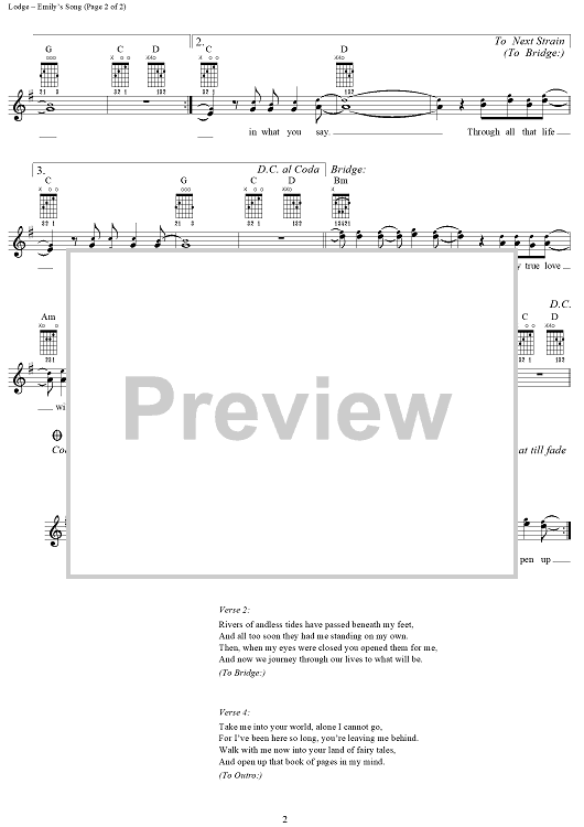 Digital Sheet Music for Emily's Song by John Lodge, Moody Blues scored for Easy Guitar/Vocal; id:288368